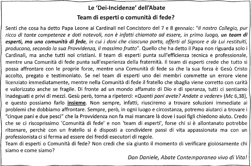 Le "Dei-Incidenze" dell'Abate - Team di esperti o comunita' di fede? |