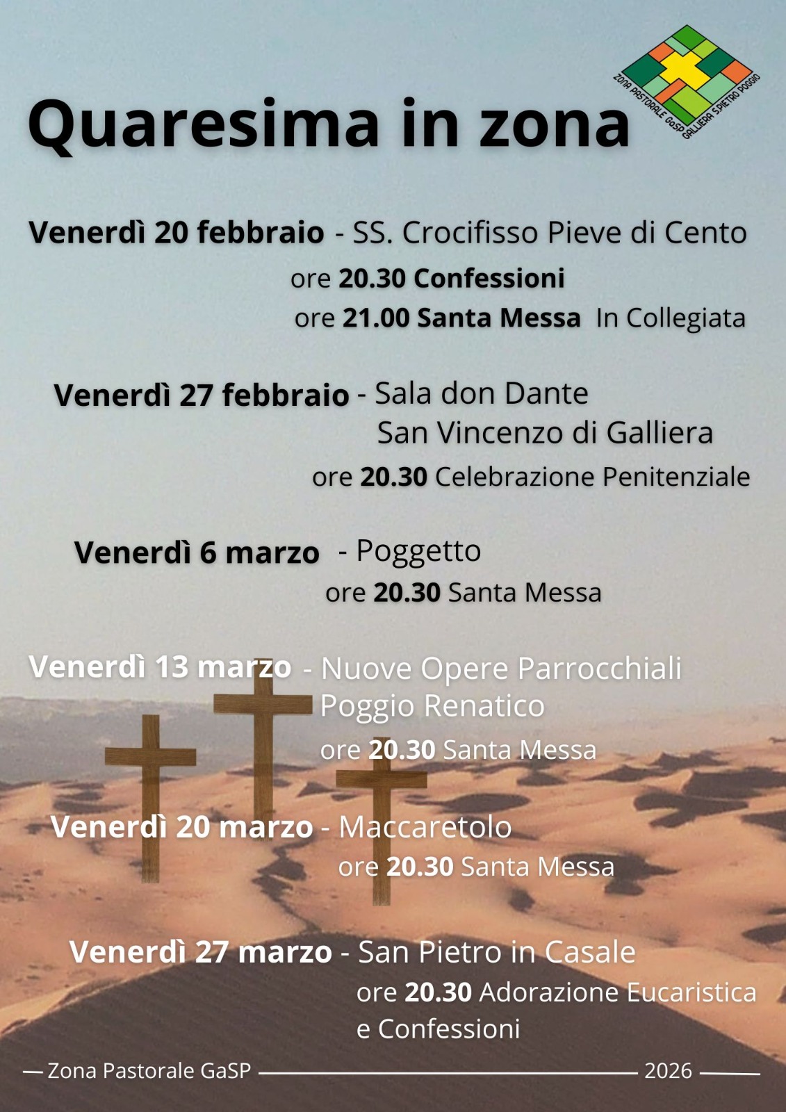 QUARESIMA IN ZONA - Tutti i venerdi' in Zona Pastorale GaSP, funzioni in preparazione alla quaresima. Programma e funzione nel volantino allegato.